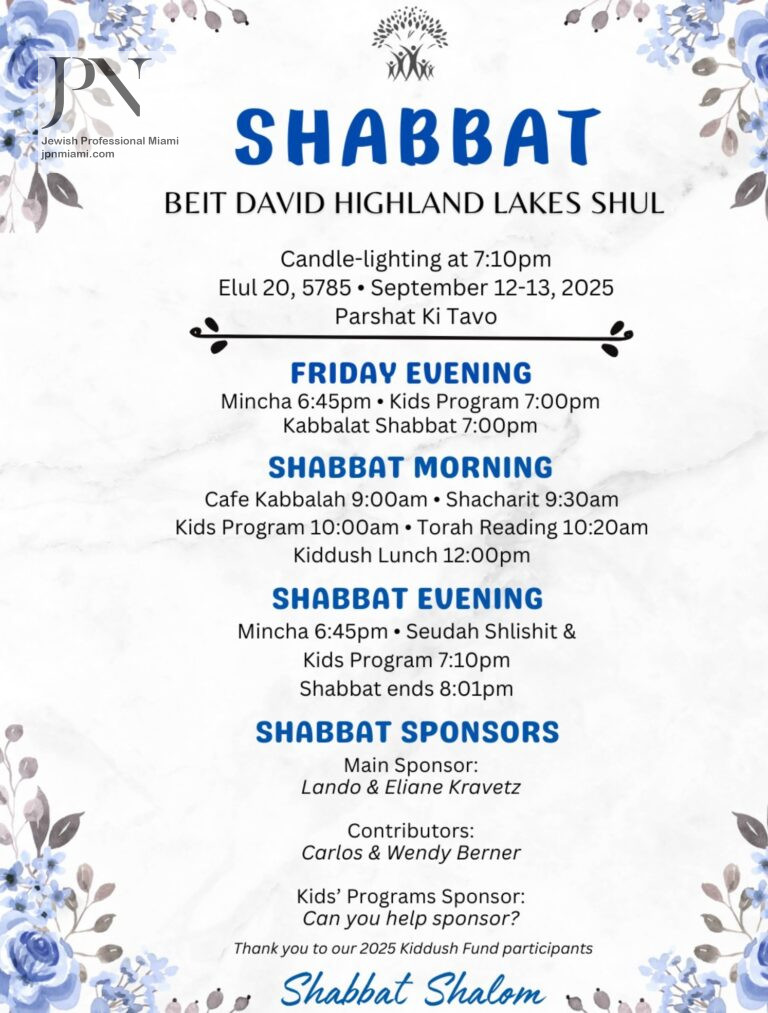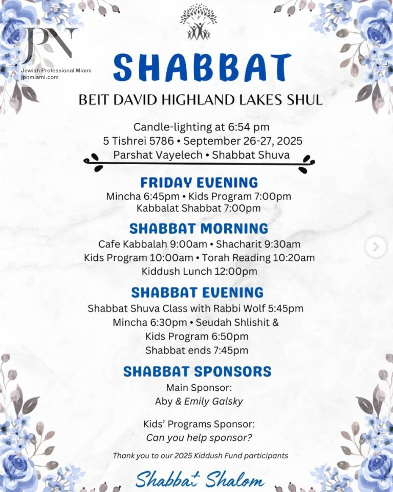 Beit David Highland Lakes Shul: Shabbat 9/26