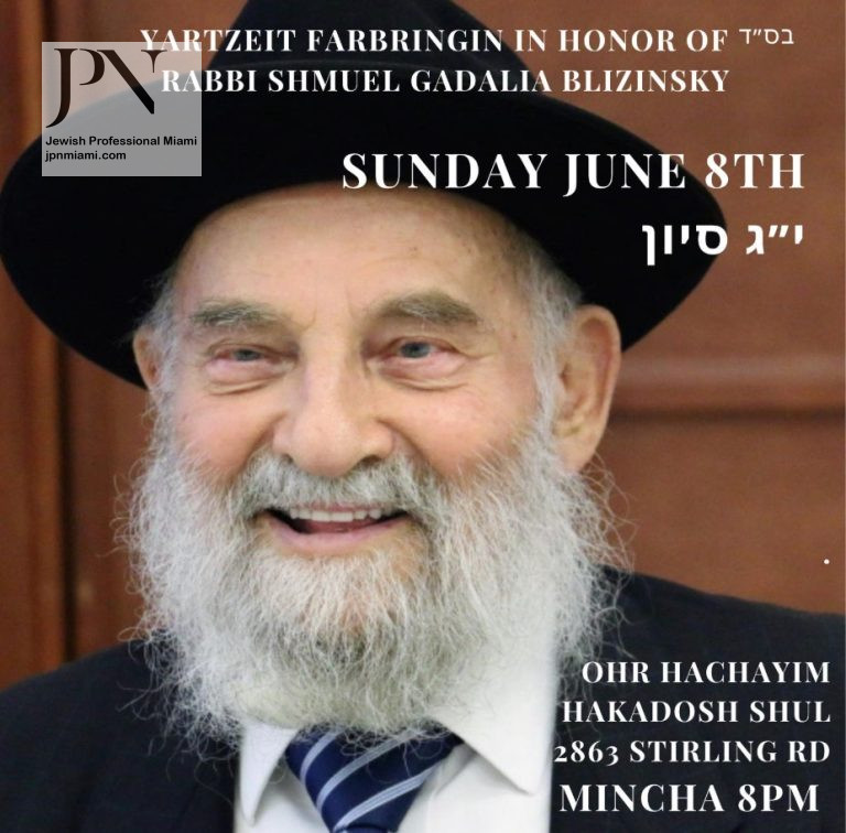 Ohr Hachayim Hakadosh Shul: Yartzeit Farbringin in Honor of Rabbi Shmuel Gadalia Blizinsky