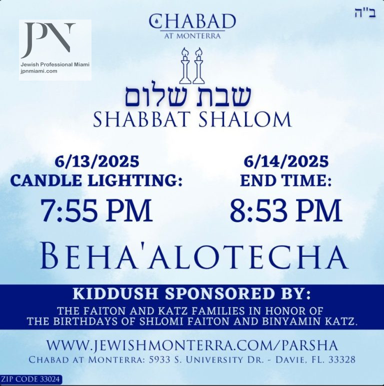 Chabad at Monterra: Shabbat Parshat Pinchas 7/18