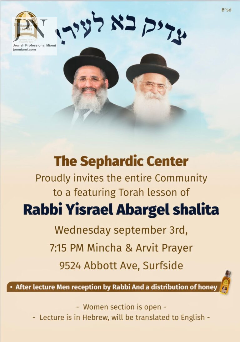 The Sephardic Center: Torah Lesson of Rabbi Yisrael Abargel Shalita