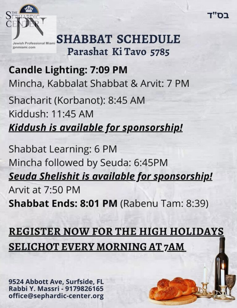 The Sephardic Center: Shabbat Parashat Ki Tavo 5785