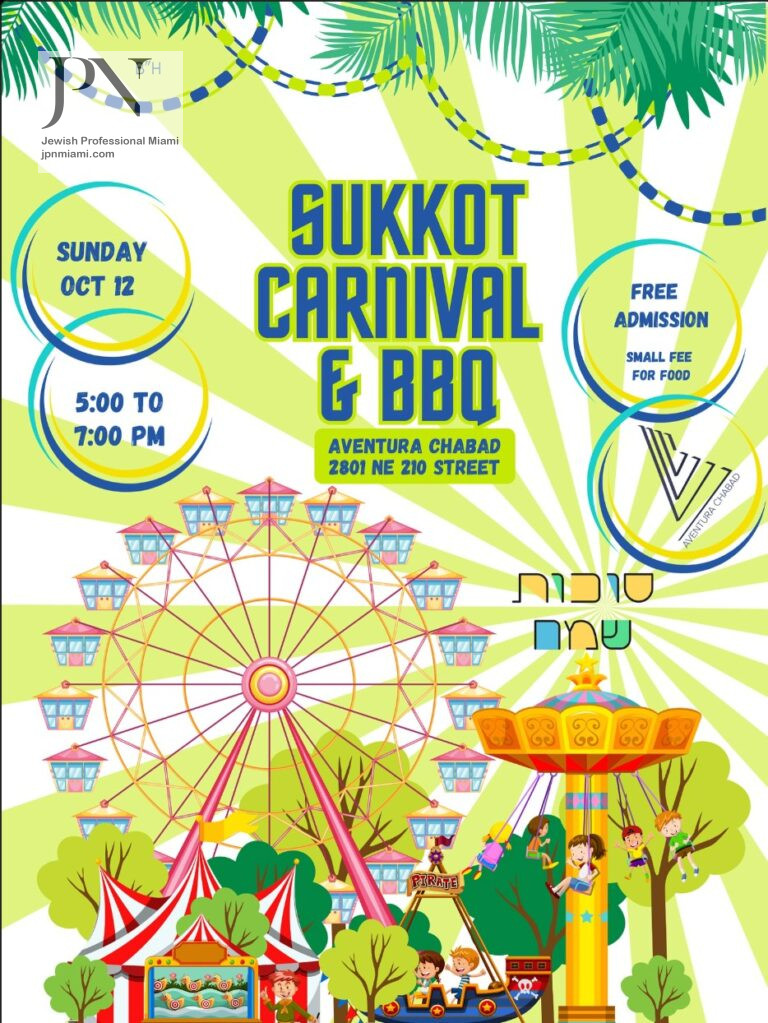 Details: Sukkot Carnival & BBQ – A family-friendly celebration featuring bounce houses, face painting, carnival games, delicious BBQ, crafts, music, and the opportunity to eat in the sukkah. Free admission; small fee for food.