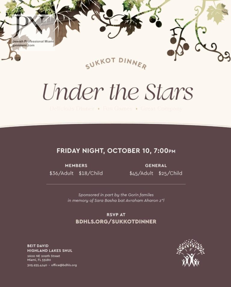 Join Beit David Highland Lakes Shul for a magical Sukkot Dinner filled with delicious food, fun games, and great company—celebrated under the stars!