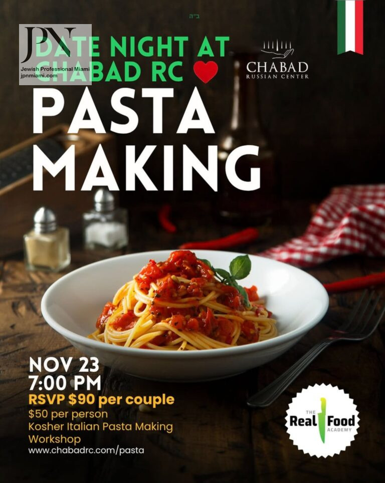 Details: Date Night at Chabad RC — Kosher Italian Pasta Making Workshop hosted by The Real Food Academy. Enjoy an evening of cooking, connection, and delicious fun!
