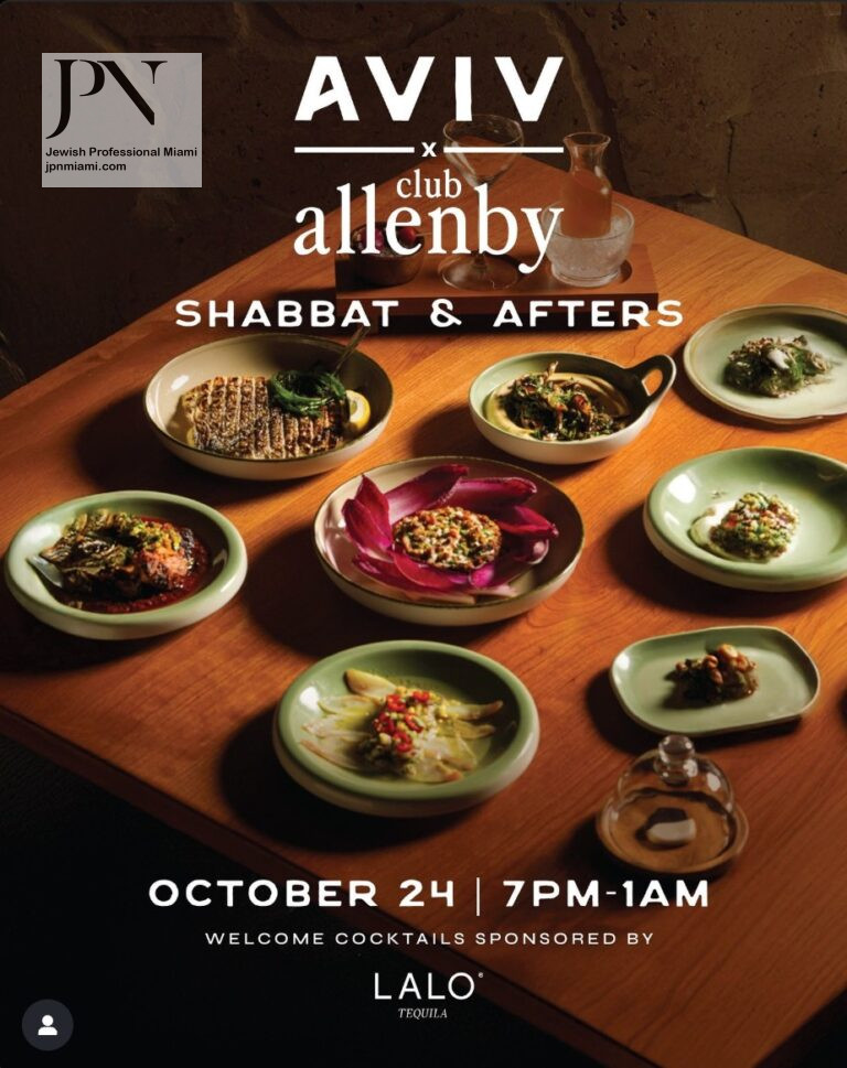 Details: Aviv x Club Allenby presents “Shabbat & Afters,” an evening of fine dining and social connection with welcome cocktails sponsored by LALO Tequila.