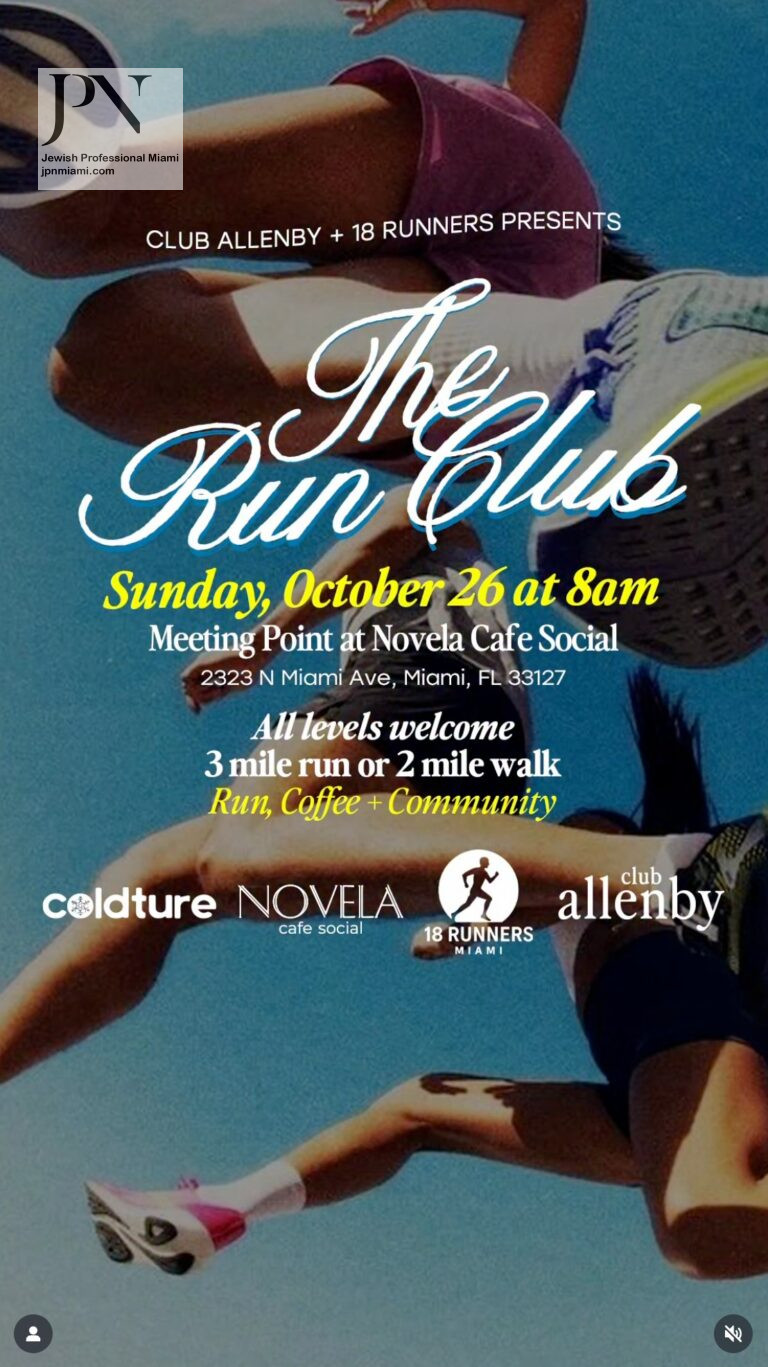 Details: The Run Club presented by Club Allenby and 18 Runners. All levels welcome for a 3-mile run or 2-mile walk followed by coffee and community at Novela Cafe Social.