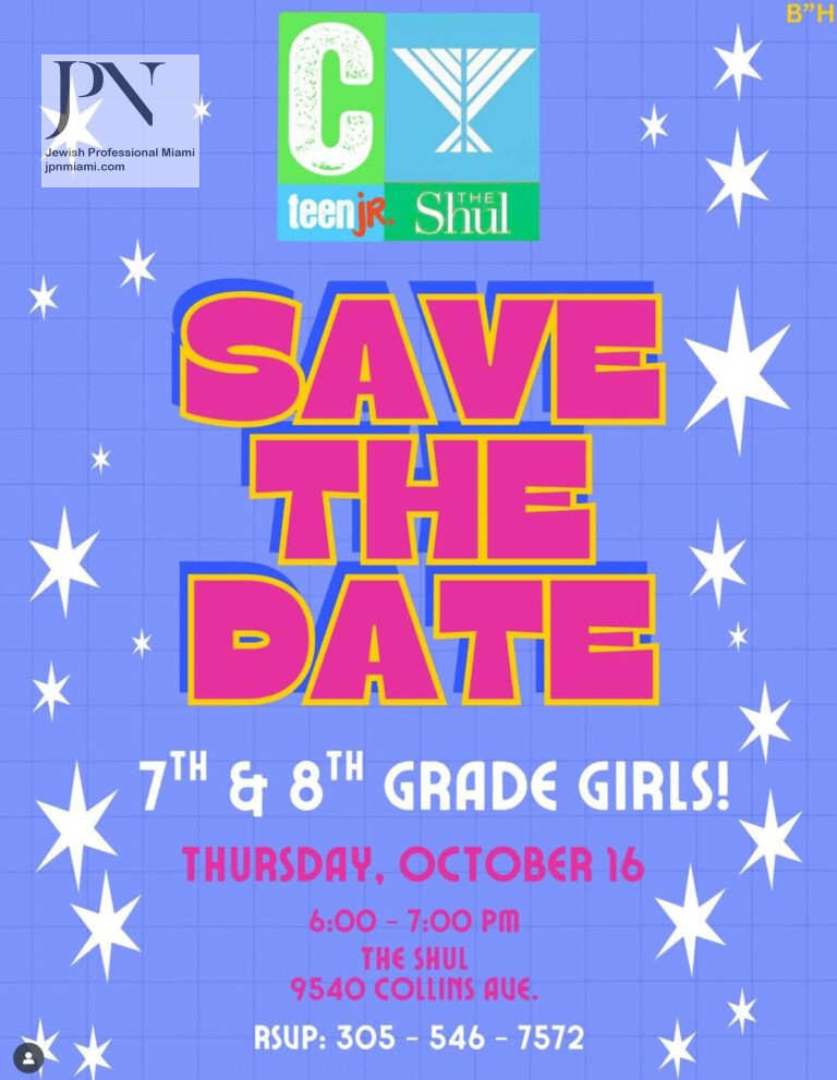 Details: Save the Date – Special event for 7th & 8th grade girls hosted by CTeen Jr. at The Shul.