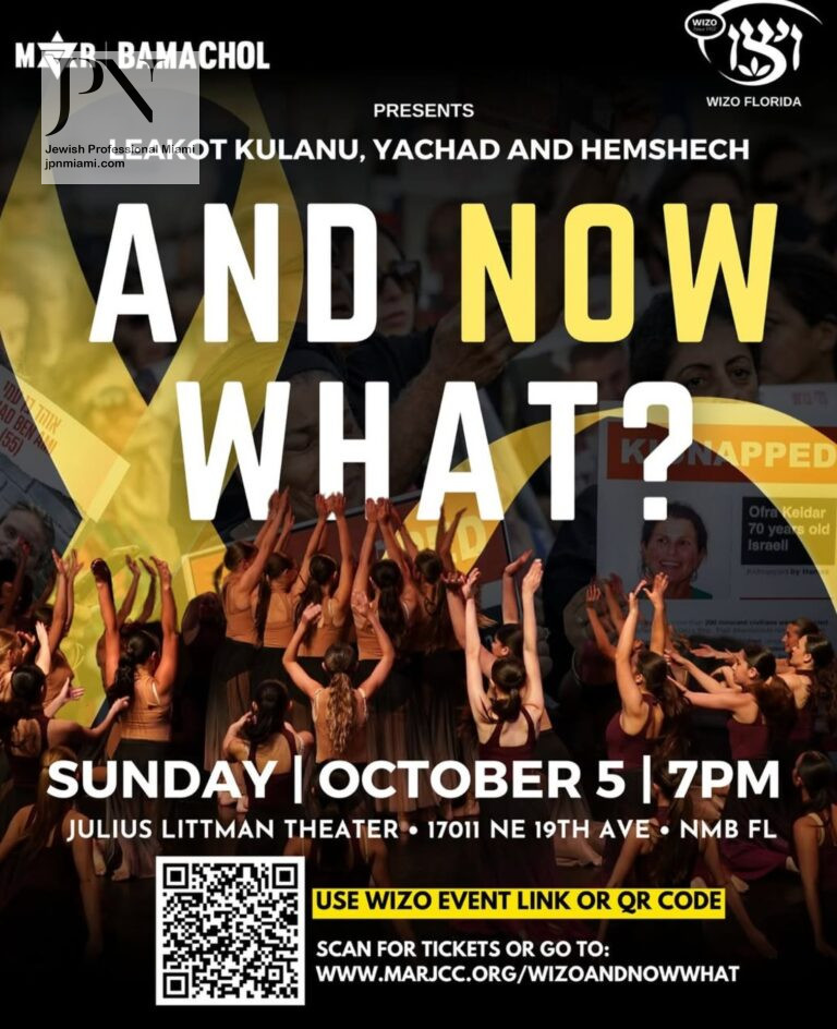 Details: “And Now What?” — a performance by Leakot Kulanu, Yachad, and Hemshech presented by MAR BamaChol and WIZO Florida, exploring resilience and unity through dance and storytelling.