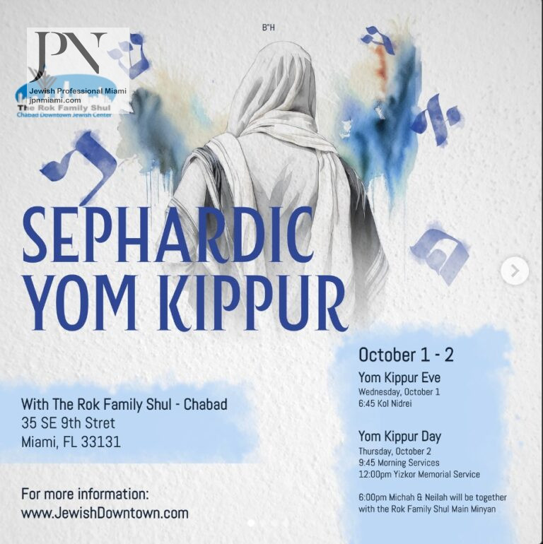 Details: Sephardic Yom Kippur services hosted by The Rok Family Shul – includes Kol Nidrei, morning prayers, Yizkor, and joint Mincha & Neilah with the main minyan.